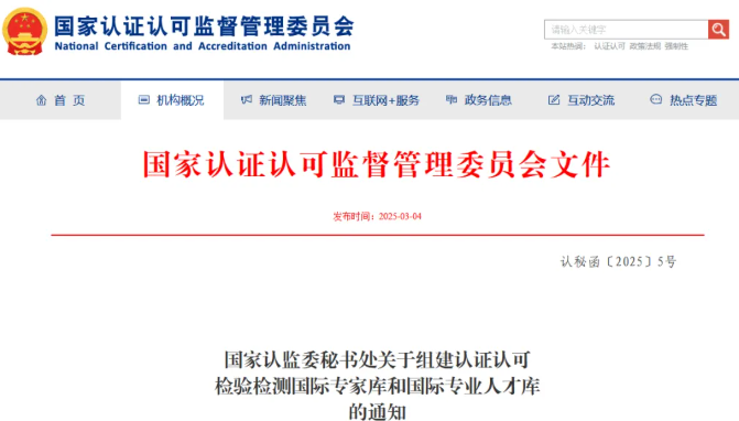 为贯彻落实《加快推进认证认可高水平开放行动方案(2024-2030年)》对认证认可国际化人才发展的要求,建设认证认可检验检测国际专家库和国际专业人才库(以下简称“两库”),实现到2025年“结构合理的认证认可国际化人才队伍初步打造”,2030年“认证认可行业国际化人才储备数量实现显著增长”的目标,现开展“两库”专家人才征集工作,有关事项通知如下:
